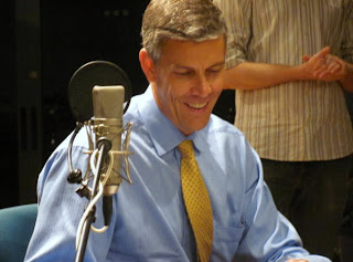 For those of you that didn't get the opportunity to listen to the live broadcast, which is probably all of the people that read this blog, here's the podcast http://www.npr.org/player/v2/mediaPlayer.html?action=1&t=3&islist=true&id=5&d=09-02-2010. It's titled "Student's Quiz Sec. Arne Duncan".